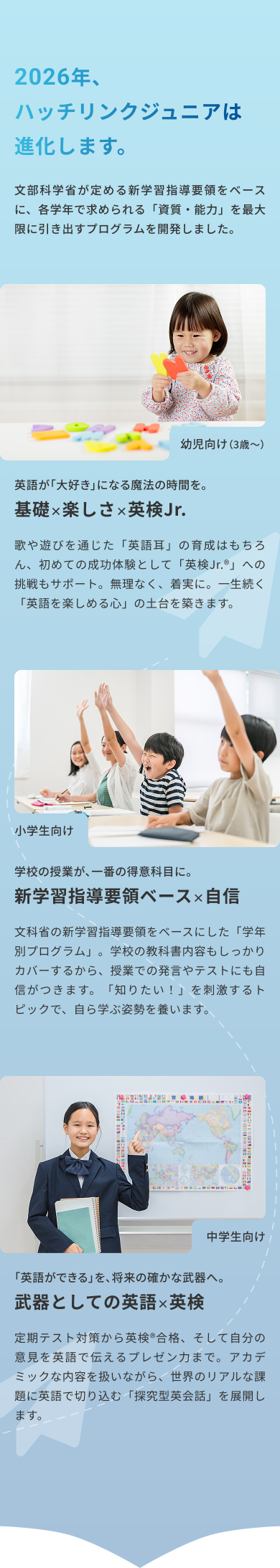✓ 文科省新学習指導要領ベース ✓ 英検®・英検Jr.®対策レッスン対応