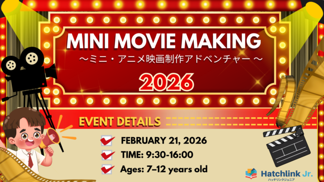 イベント・キャンペーン 【対面式イベント】Mini Movies Making! – Part 2🎬英語でムービーを作ってみよう~ 2026年2月11日 オンライン英会話運営事務局 【公式】ハッチリンクジュニア・オンライン英会話ブログ